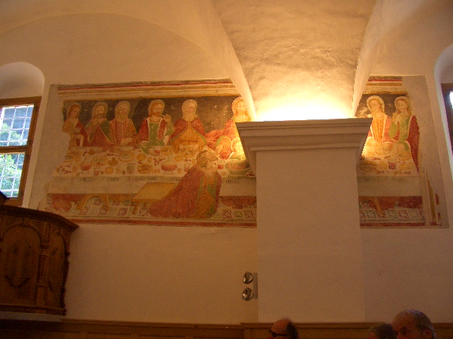 (↑)柱が「最後の晩餐」の中に入ってしまったのは、この絵が壁に塗り込められているのが、改築後に発見されたから。