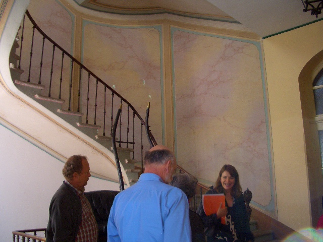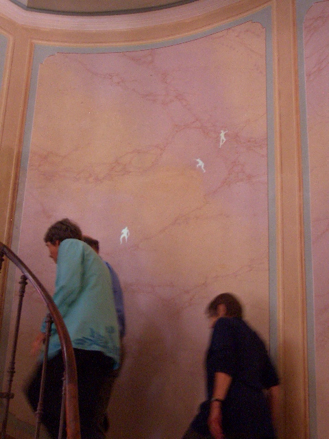 (↑)階段沿いの壁では、近代アートが。